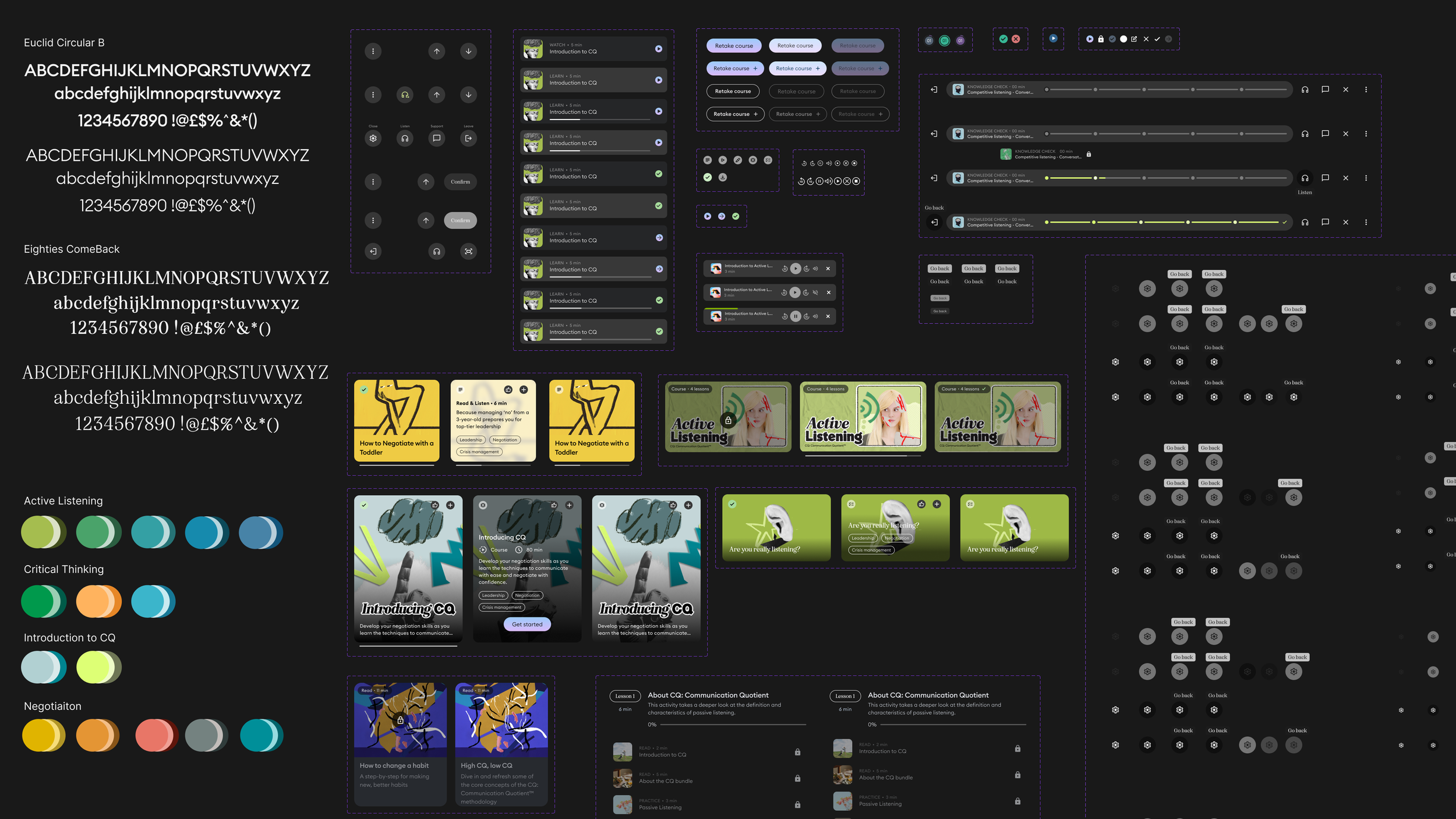 The team and I delivered end-to-end design across UX/UI, content, animation and a scalable Figma-based design system. Working in fast sprints, we translated complex communication frameworks into flexible, engaging learning experiences. Each course featured its own bold visual language, blending illustration, photography and hand-drawn elements.